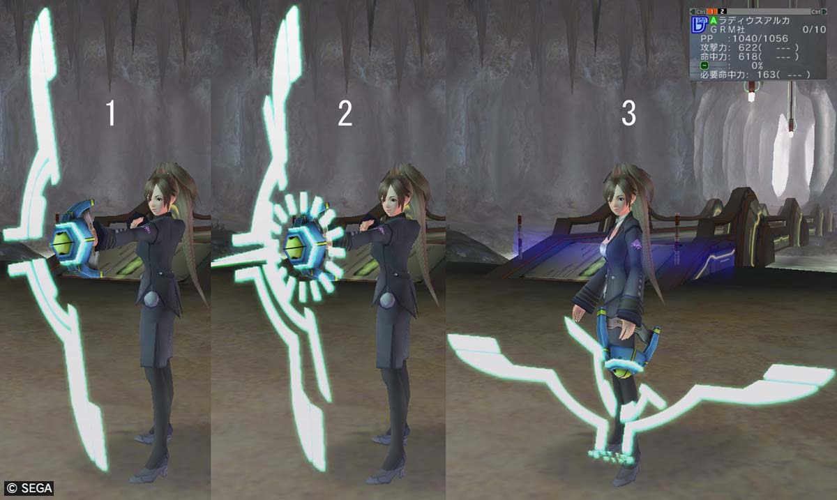 撃つ前は、割と地味な弓なんですが、撃つときにフォトン部分が展開し回転!