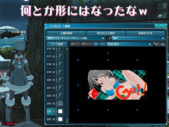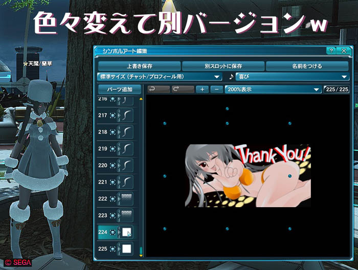 さっきのSAをベースにして、ポーズを変えて~背景変えて~文字も変えて~