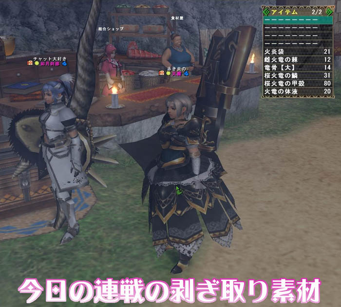 桜火竜の甲殻80、 火竜の体液20、倉庫にしまった雌火竜の逆鱗1