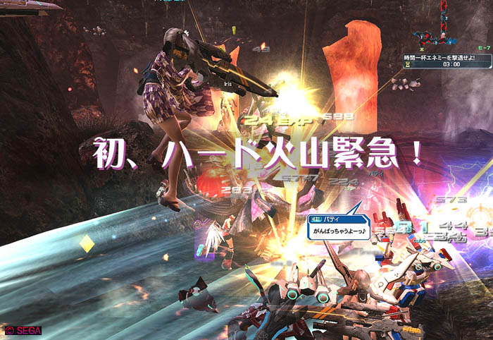 セイさん、パティちゃん、cibeさんを誘い火山のハード緊急へGO!です