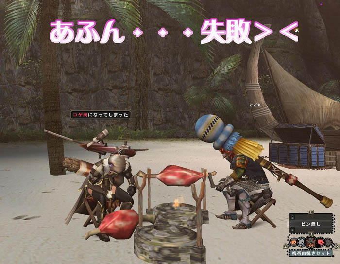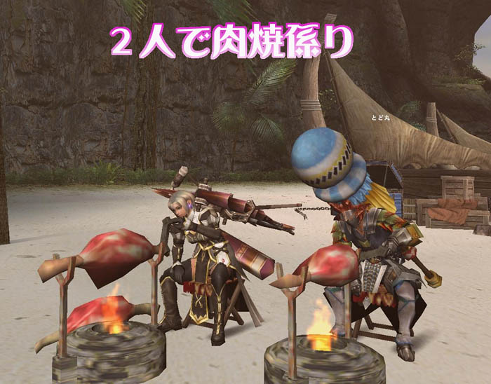 他のメンバーがザザミとヤオザミを倒してる間に肉焼ですw