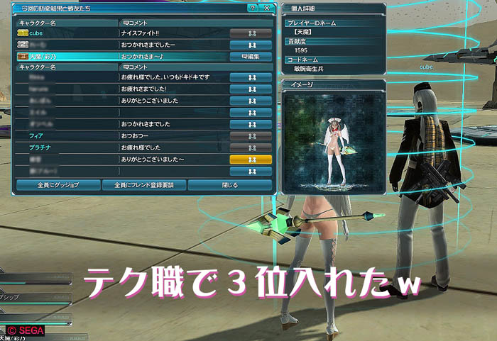 テクで行くと、総合でいつもは8位とか、10位とか
