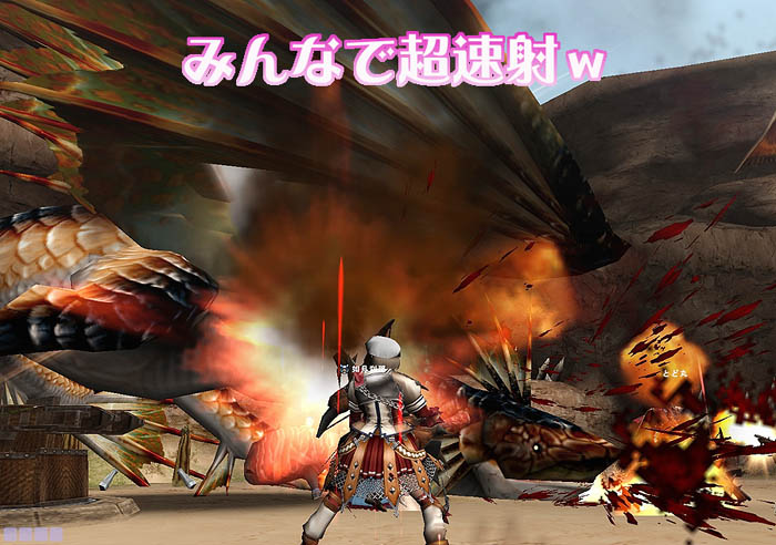 みんなで撃ちまくってるから、怯みまくりで、ほとんどいじめ・・・いや・・・